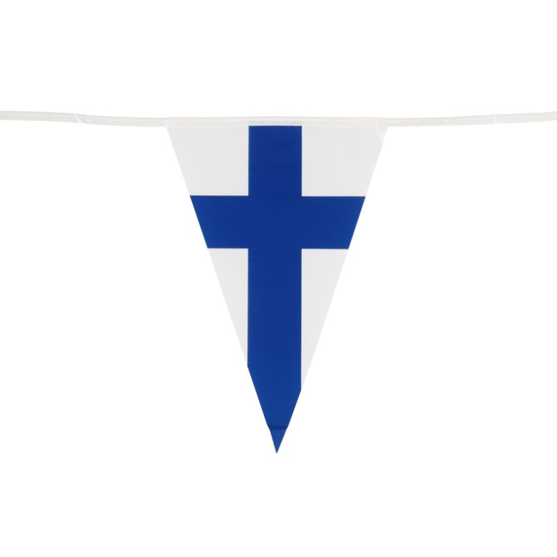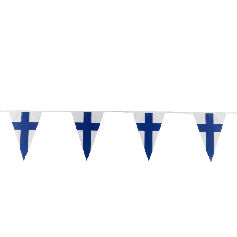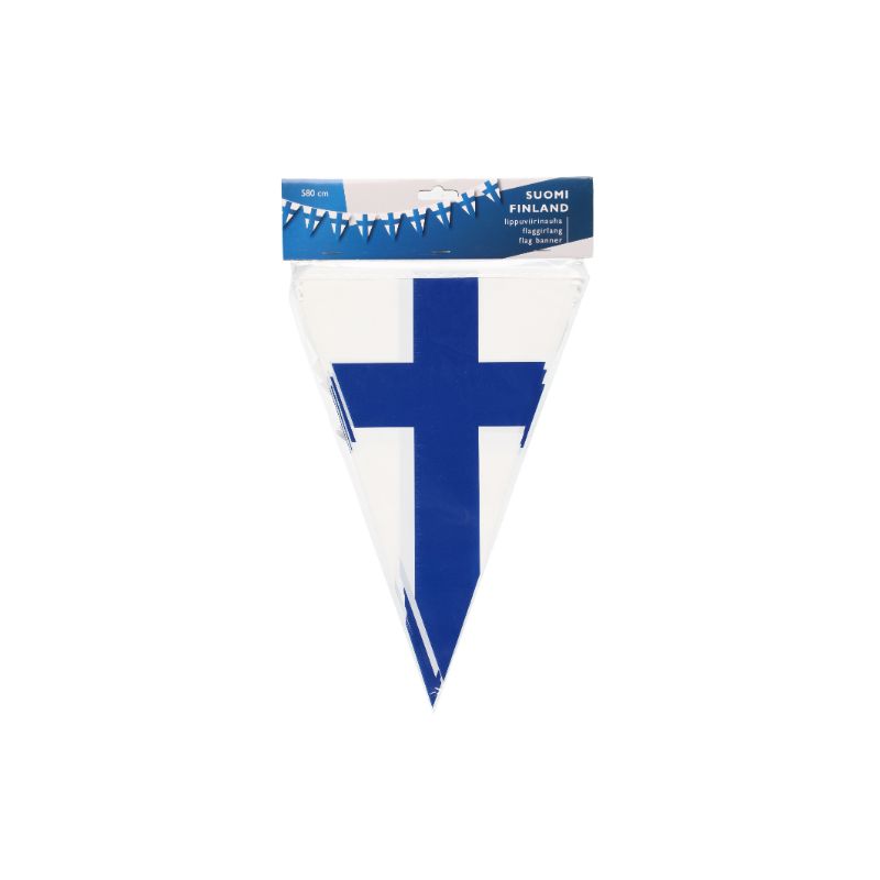 5,8 metriä pitkä Suomi sini valkoinen lippuviiri itsenäisyyspäivään, otteluihin ja Suomen kannustamiseen. Hurraa Suomi!