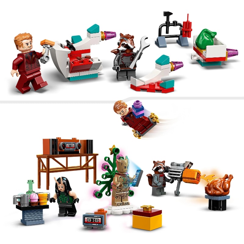 - 24 lahjaa, yksi joka päivälle – Jokaisen LEGO® Marvel Studiosin Guardians of the Galaxy -joulukalenterin (76231) luukun takana on yllätys, joka innostaa rakenteluun ja mielikuvitusleikkeihin.