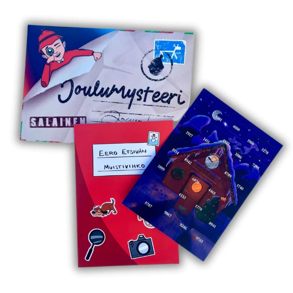 Joulukalenteri Joulumysteeri – Joulumysteeri on koko perheen toiminnallinen joulukalenteri. Se vie joulunodotuksen täysin uudelle tasolle tehden siitä jännittävän elämyksen! Joulumysteerin voi pelata niin yksin kuin yhdessäkin. Se sopii kaikille lapsista aikuisiin.