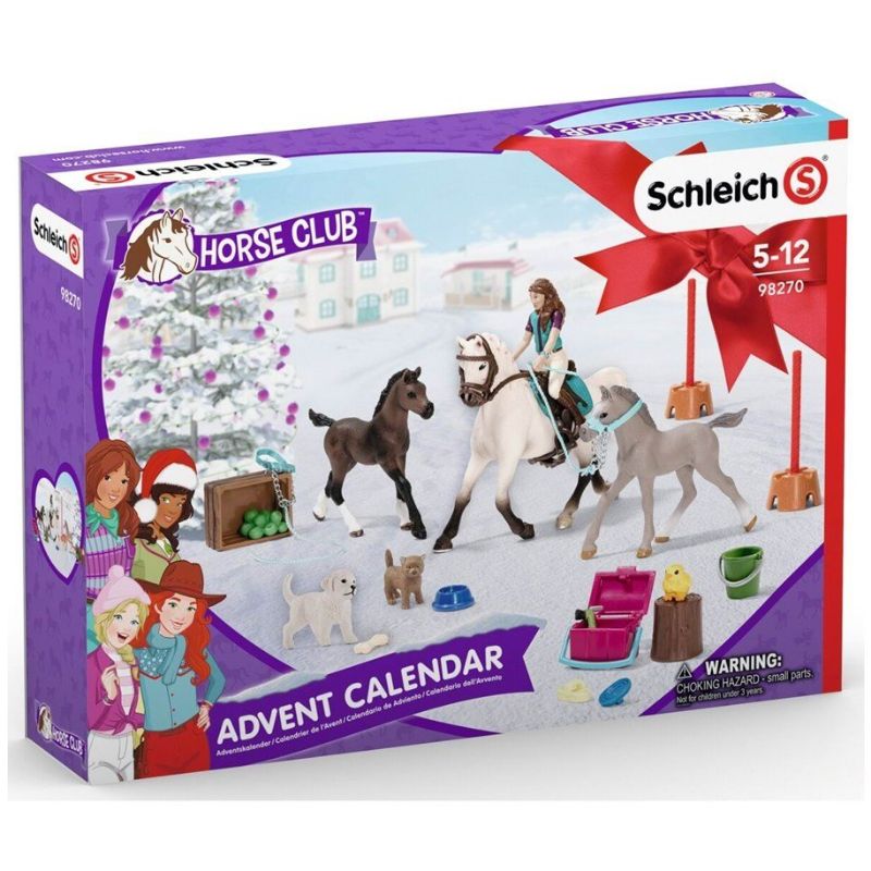 Schleich® Horse Clubin Horse Club 2021-joulukalenteri on nyt saapunut! Joulukalenteri ilahduttaa hevosfaneja joulua odotellessa. Pakkaus sisältää kolme hevosta, kaksi koiraa, tytön, tipun, ämpärin, luun, harjan, suitset, ruokakupin, aitauksen, satulan ja muita tarvikkeita. Joulun odotus ei voisi olla mukavempaa!