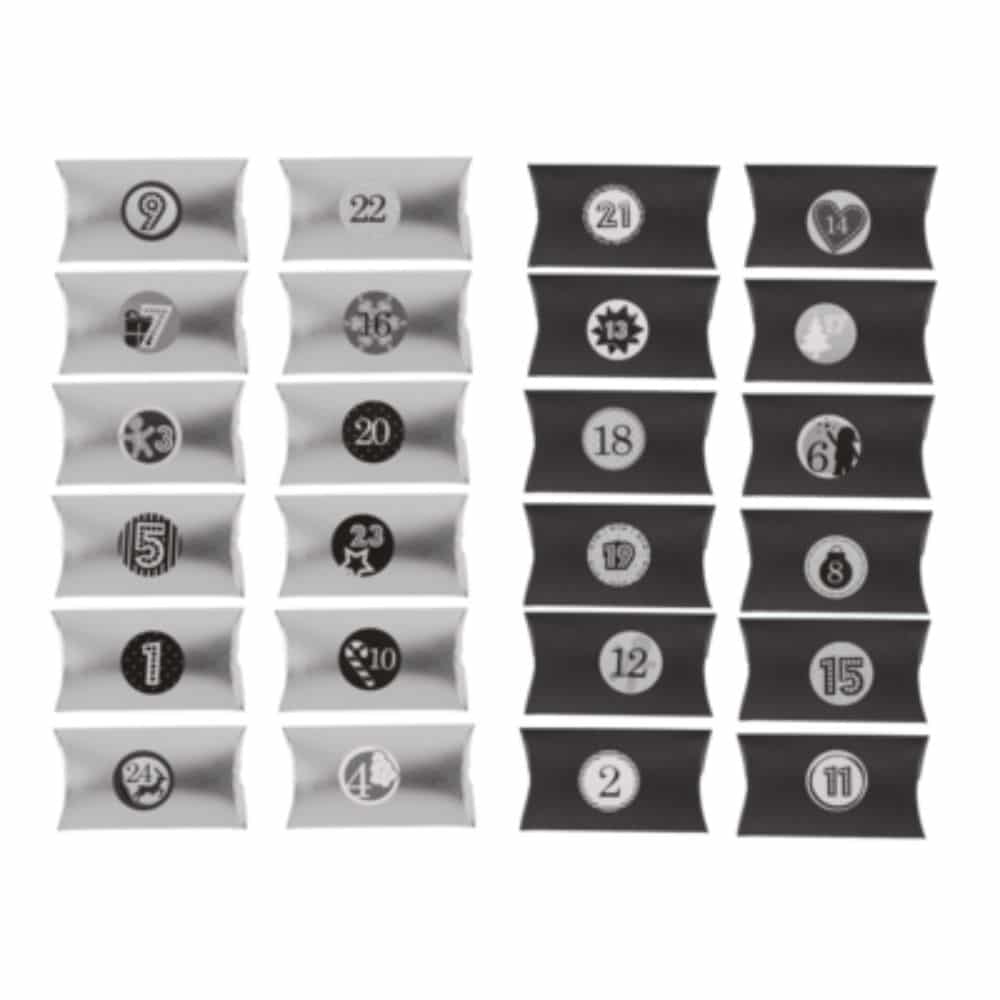 - Kaunis musta-hopeinen adventtikalenteri, jonka pääset itse rakentamaan