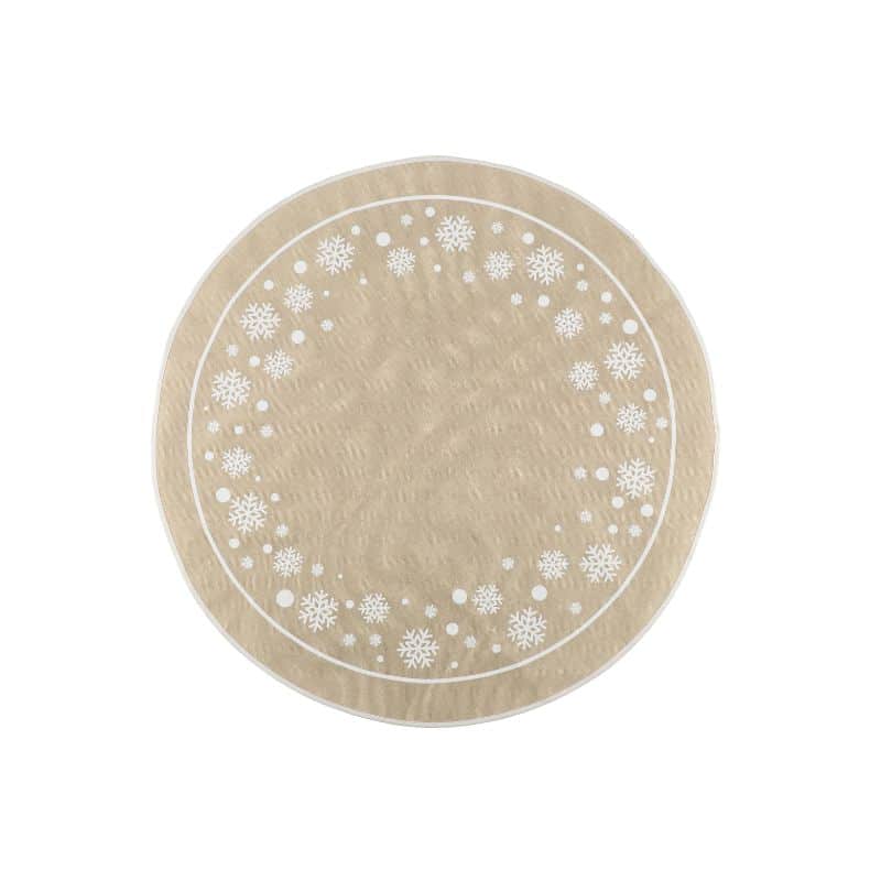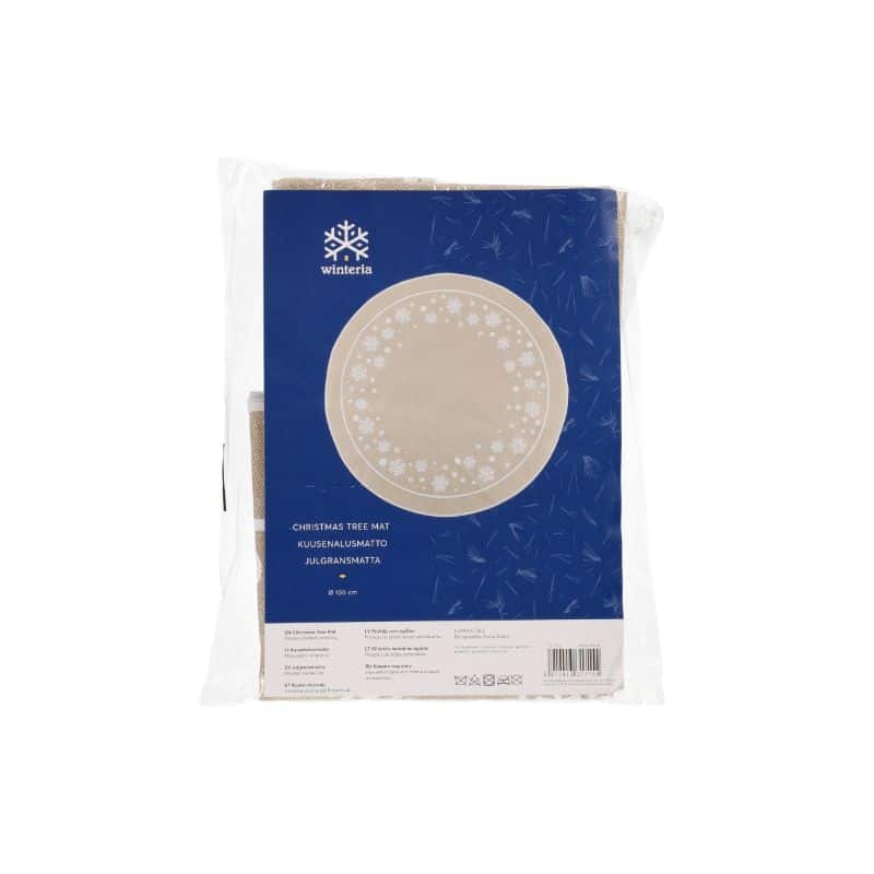 Viimeistele joulusisustus perinteikkäällä ja tyylikkäällä kuusenalusmatolla! Matto suojaa lattiaa ja antaa täydellisen silauksen joulusisustukseen, ja sen pohja on muovitettu. Juutin värinen valkoiseksi painettu kuusenalusmatto on halkaisijaltaan 100 cm. Maton on suunnitellut Anna Säteri.