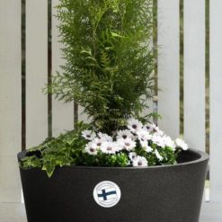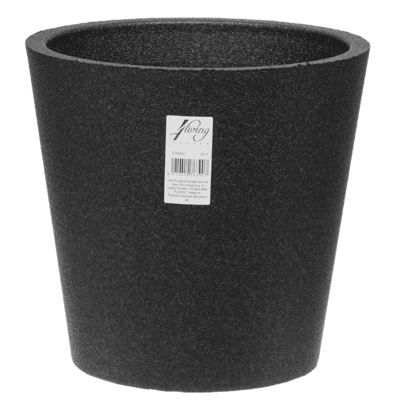 Piharuukku 39 cm Termo musta ruukku on Kotimainen termoruukku, joka soveltuu erinomaisesti monivuotisille kasveille terasseilla ja puutarhoissa. Kestää haurastumatta ja haalistumatta niin kuumassa auringonpaisteessa kuin kovassa pakkasessakin. Kesällä kasvualusta pysyy kosteana ja viileänä, talvipakkasilla ruukun paksu seinämä suojaa arkaa juuristoa jäätymiseltä. Materiaali on myös elintarviketestattua, joten soveltuu hyvin yrttien yms. syötävien kasvien viljelyyn.