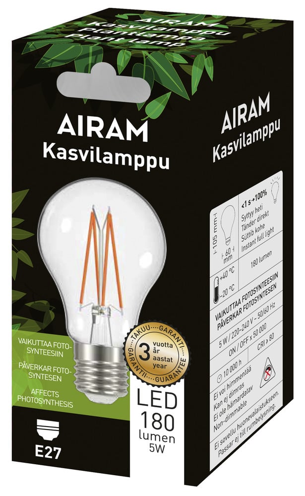 Kasvilamppu Led 5 W E27 180 L punainen valo on suunniteltu kasvien tehokkaaseen kasvamiseen! 🌱 Nopea toimitus, tilaa heti!