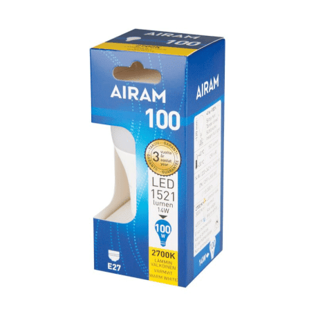 Led lamppu E27 14W 1520L (100W) 2700 kelvin Airam