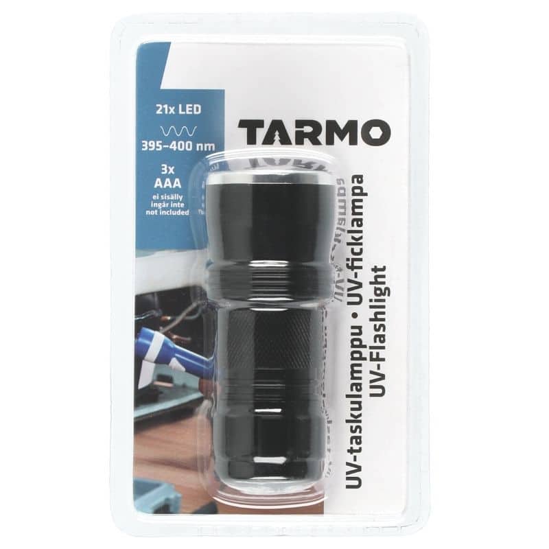 UV-valo 21 ledillä. Aallonpituus 395-400nm. 3*AAA paristot (ei säsälly)
