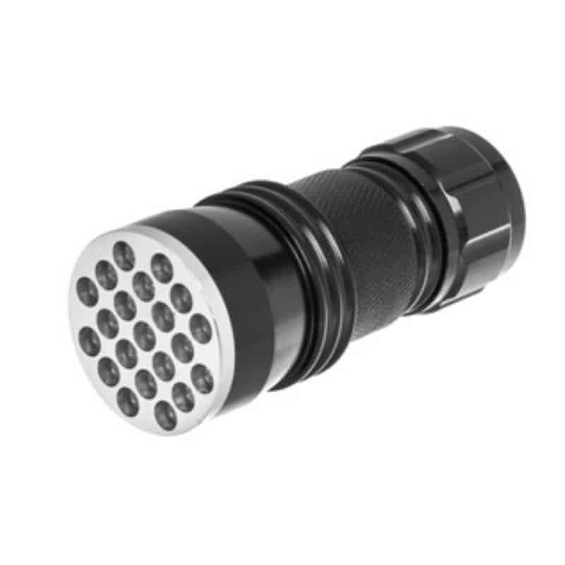 UV light with 21 UV LEDs. Wavelength 395-400 nm. 3xAAA batteries (not included)