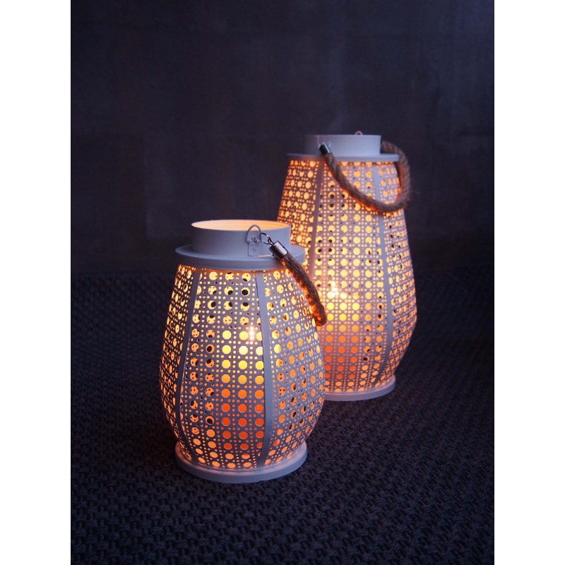 Tyylikään ja raikaan merihenkisen lyhdyn koristeleikkausten läpi valo hohtaa kauniisti. Lyhty sopii kynttilöille, LED-kynttilöille tai LED-valosarjoille.