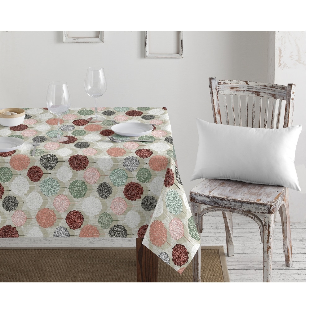 Kangasmainen kerniliina on laadukas ja juhlava vaihtoehto ja sopii myös mainiosti arkeen. Kerni 140 cm värikkäät lehdet on kangaspöytäliina akryylipinnoitteella. Kerniä on helpompi pitää puhtaana kuin kangasliinaa likaa hylkivän akryylipinnan vuoksi. Kauniisti laskeutuva puuvillaliina kestää pieniä vahinkoja. Puhdista liinaa rätillä ja astianpesuaineella päivittäin. Kerniliinan voi myös pestä pesukoneessa 40C kevyesti ja silittää miedolla lämmöllä nurjalta puolelta, jotta se ei näytä ryppyiseltä.