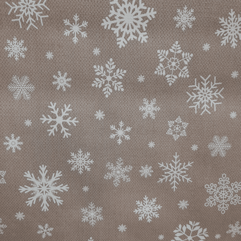 Kerniliina 140 cm Mihra harmaa – valkoinen hiutale. Kangasmainen kerniliina 140 cm lumihiutale on laadukas ja juhlava vaihtoehto ja sopii myös mainiosti arkeen. Liina on aivan kangaspöytäliinan näköinen ja oloinen, mutta sitä on helpompi pitää puhtaana kuin kangasliinaa likaa hylkivän akryyli pinnan vuoksi. Kauniisti laskeutuva puuvillaliina kestää pieniä vahinkoja. Puhdista liinaa rätillä ja astianpesuaineella päivittäin. Kerniliinan voi myös pestä pesukoneessa 40 C kevyesti ja silittää miedolla lämmöllä nurjalta puolelta, jotta se ei näytä ryppyiseltä.