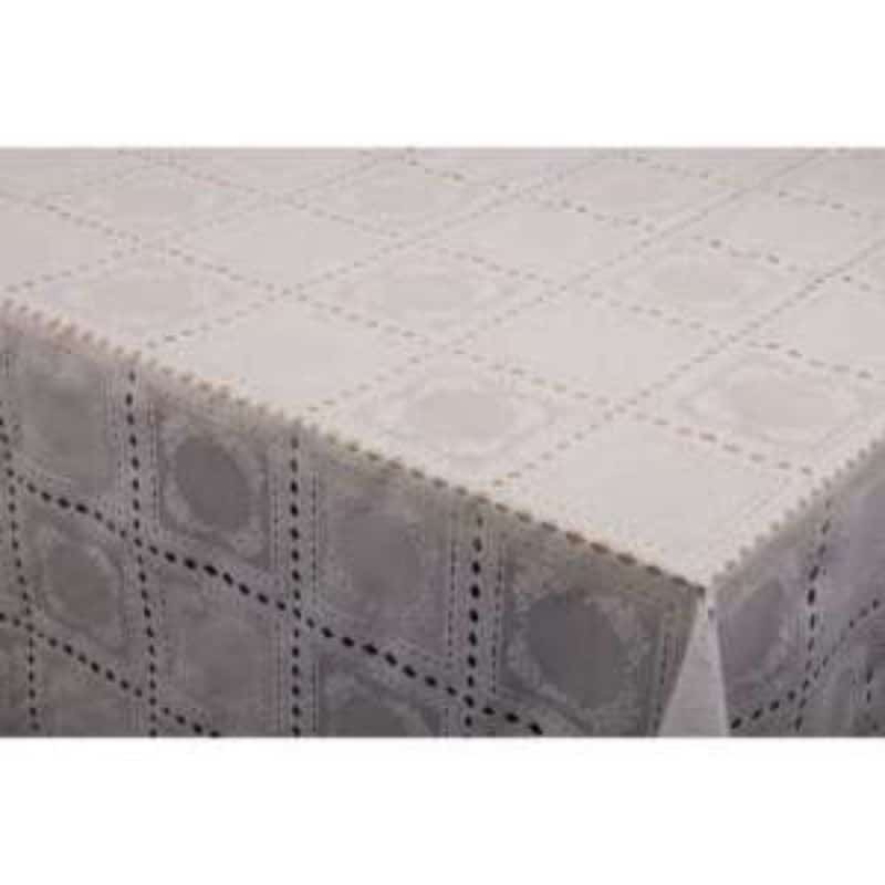 Suojaa pöytäsi tällä kauniilla ja kestävällä muovisella pitsipöytäliinalla. Pitsipöytäliina on kuin virkattu pitsi, mutta se on helpompi pitää puhtaana ja puhdistaa materiaalinsa ansiosta. Tässä pöytäliinassa ei ole muovia alla. Kun pöytäliinaan tulee isoja likoja, liota se ja nosta kuivumaan. Pitsipöytäliinassa on neliöitä. Toisissa kuvioissa on lehdillä reunustettuja ympyröitä ja toisissa ruusun näköinen kukkanen.