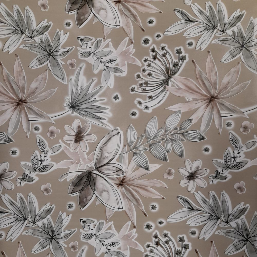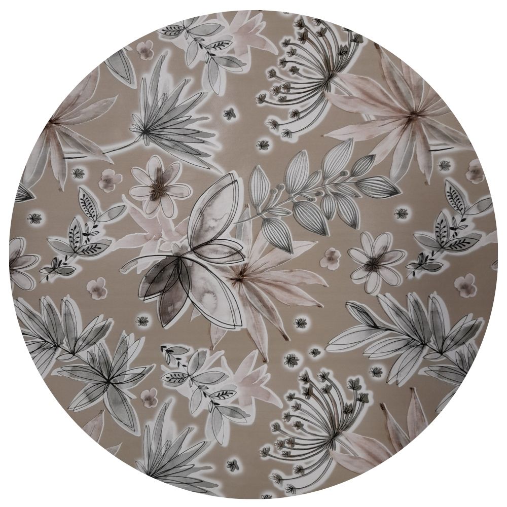 Pyöreä vahakangas 140 cm Kukka harmaa beige pohja