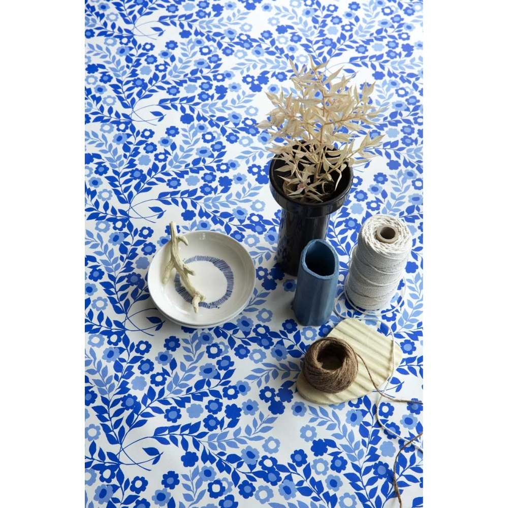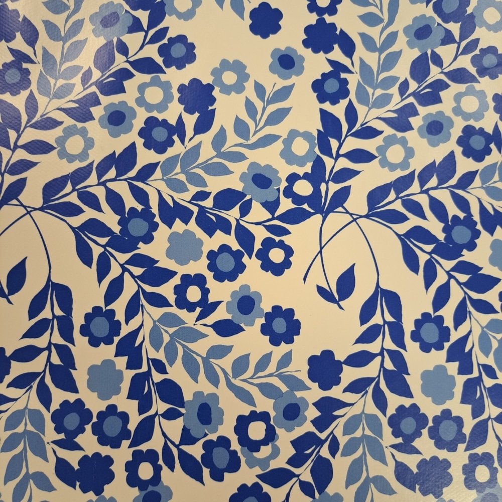 Luo uusi ilme kotiisi uudella kauniilla vahakangas 140 cm kukkaköynnös sininen Lola pöytäliinalla! Käytännölliset vahakangas pöytäliinat sopivat mainiosti jokapäiväiseen arkeen koti liinaksi, ruokailuun, askarteluun, ulos sekä sisälle. Perinteiset muovipinnoitetut vahakankaat ovat edullisia ja suojaavat pöytää tehokkaasti. Vahakankaat hylkivät likaa ja vettä, kestävät pieniä vahinkoja ja ovat helppo puhdistaa. Älä pese vahakangasta pesukoneessa, sillä se rypistyy, vaan pyyhi liinaa rätillä ja astianpesuaineella päivittäin. Pöytäliinan pinnalta pyyhkäiset suuretkin sotkut pois hetkessä. Vahakangasliinan kuvio on muovia ja sen alla on kuitukangas. Valitse juuri sen mittainen pala kuin haluat, 10 sentin tarkkuudella!