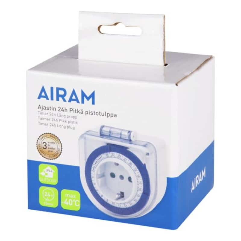 Ajastinkello 24 H pitkä pistotulppa Airam IP44