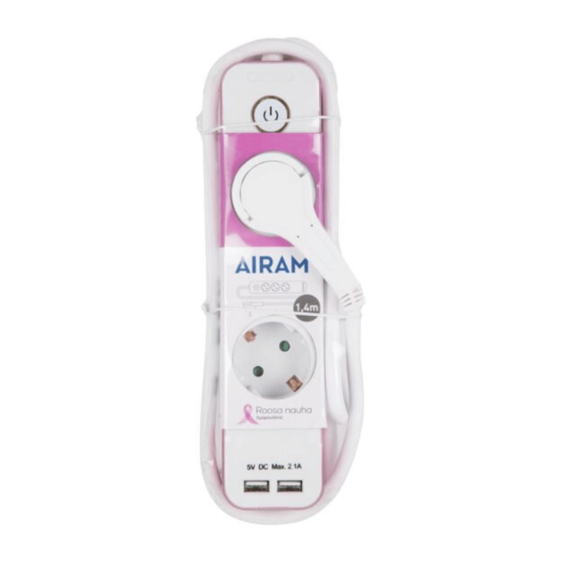 Jatkojohto 1.4 m 3 osa 2 x usb 2.1A Roosa Airamin Roosa nauha -tuotteilla ilahdutat helposti ystävää tai itseäsi. Airam lahjoittaa Syöpäsäätiölle 0,50 € jokaisesta myydystä Roosa nauha jatkojohdosta. Lahjoitusvaroilla tuetaan kotimaista rintasyöpätutkimusta. Tuotteet ovat myynnissä vain Suomessa.