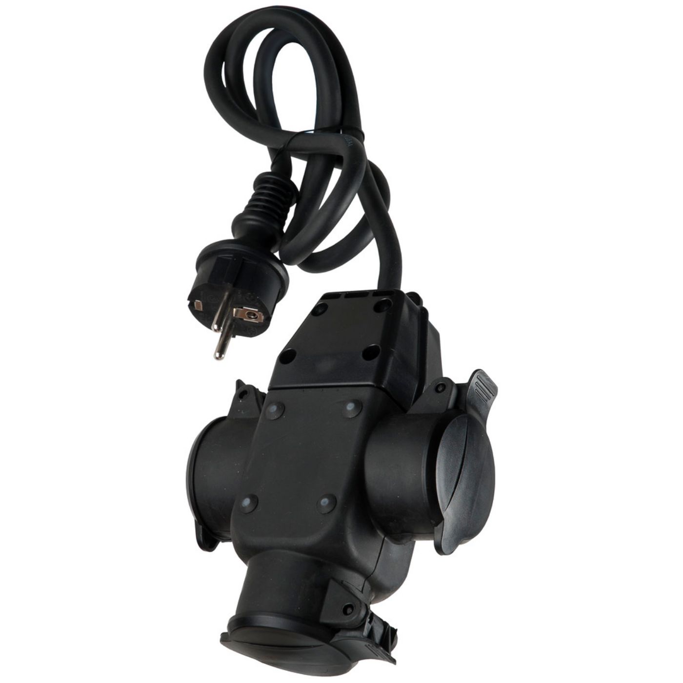 Jatkojohto kumi 3 osa 1 m Maadoitetut kumikaapelit sisä- ja ulkokäyttöön. 3- ja 4-osaisten jatkojohtojen haaroitinpistorasiat voidaan ripustaa seinälle. Lapsisuojallinen tuote. 1-osaiset pitkät kumikaapelijatkojohdot