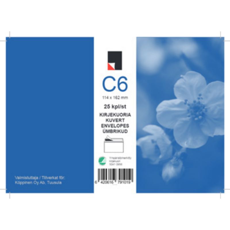 Perinteinen valkoinen kirjekuori kätevällä teippisuljennalla. Kirjeiden, korttien, asiakirjojen jne. lähettämiseen.