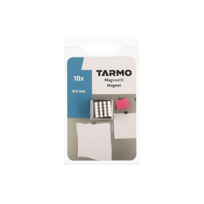 Halkaisija 8 mm, paksuus 3 mm. Todella vahva sinkkipäällysteinen neodyymimagneetti (N35). Neodyymimagneetteja käytetään yleisesti luovasti soveltaen esimerkiksi teattereissa ja erilaisissa mallirakennelmissa, huonekaluissa, messuosastoilla ja pakkauksissa. Magneeteilla on myös useita käyttökohteita suunnittelussa ja valmistuksessa sellaisissa kohteissa, joissa vaaditaan pientä kokoa mutta maksimaalista lujuutta.
