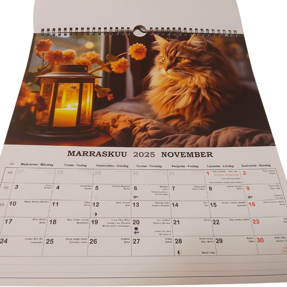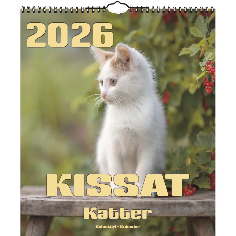 Seinäkalenteri iso kissat 2026 Aika – Kissa aiheinen Suomessa valmistettu suuri suomen- ja ruotsinkielinen vuoden 2026 seinäkalenteri. Kalenteri on täynnä suloisia eri rotuisia kissoja.