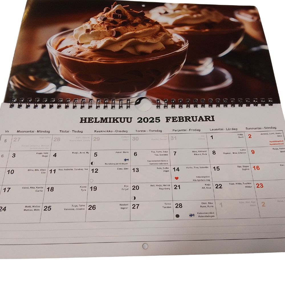 Kalenteri seinäkalenteri panoraama design 2026 Aika on suomen- ja ruotsinkielinen seinäkalenteri. Panoraamakalenterissa on kuvattuna eri esineitä ja ruokia.