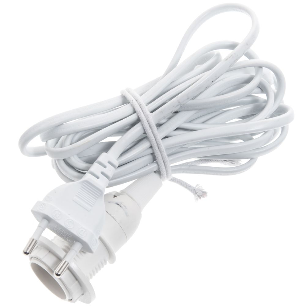 On/off-katkaisijalla varustettu valkoinen johto sopii esimerkiksi paperitähden lampulle tai pallovalaisimeen.