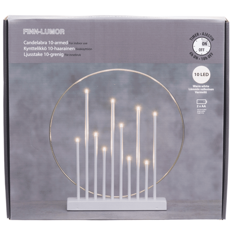 Kynttelikkö led 10-haarainen metalli valkoinen Finn-lumor