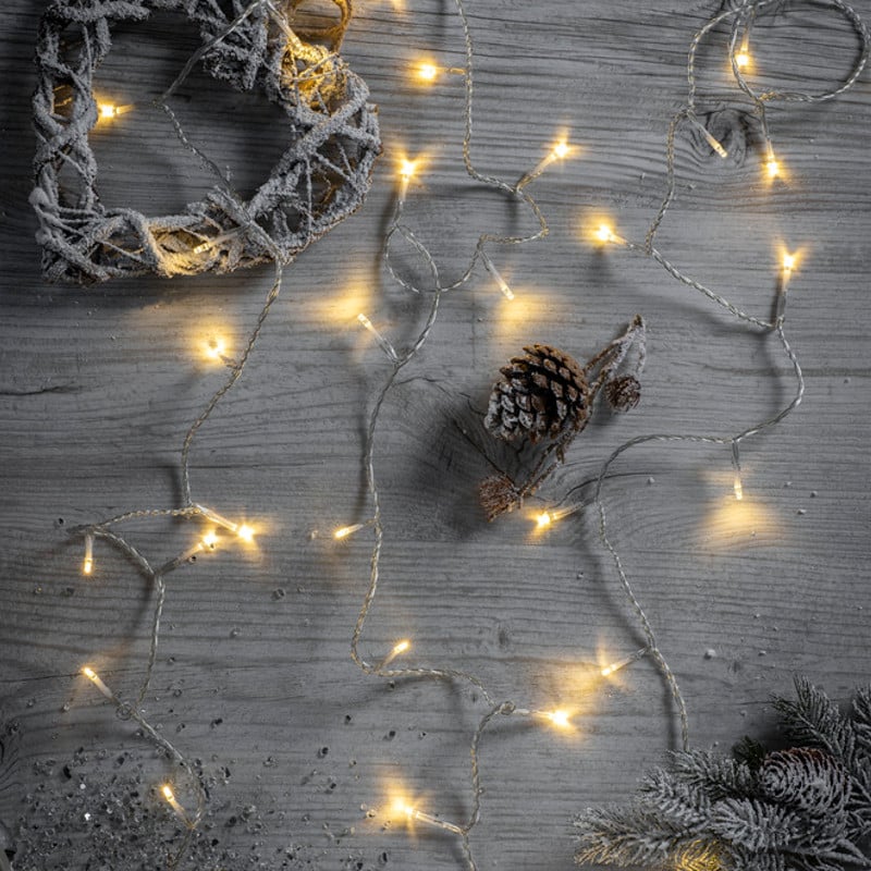 Ulkokäyttöön sopivat led-sarjat kirkkaalla tai tummalla johdolla. Kirkkaalla johdolla neljä eri mittaa, tummalla jopa kuusi eri pituutta. Led lämmin valkoinen, ei vaihdettava.