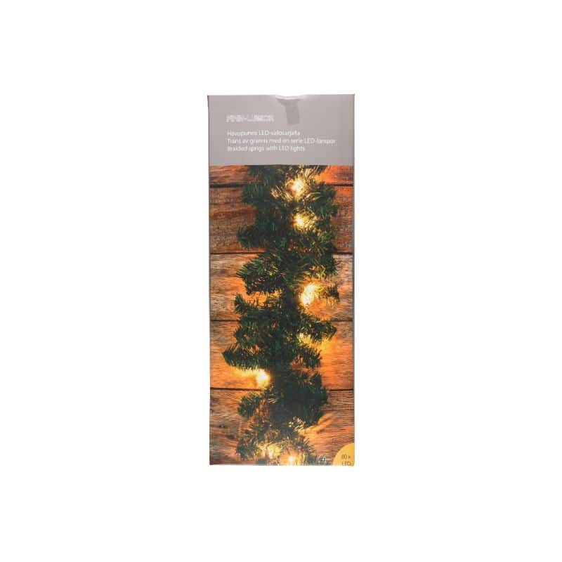Viisi metrinen 80 ledin vihreä havupunos soveltuu sisä- ja ulkokäyttöön. Havupunoksella luot näyttäviä koristeluita esimerkiksi oviin, parvekkeiden- ja terassien kaiteisiin sekä portaikkoihin. Ledit ovat meripihkan värisiä ja liitäntäjohto on 10 metriä pitkä.