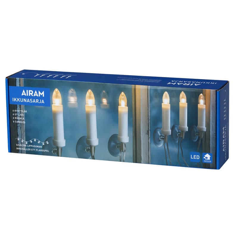 Imukupeilla kiinnitettävä kuuden kynttilän ikkunasarja.