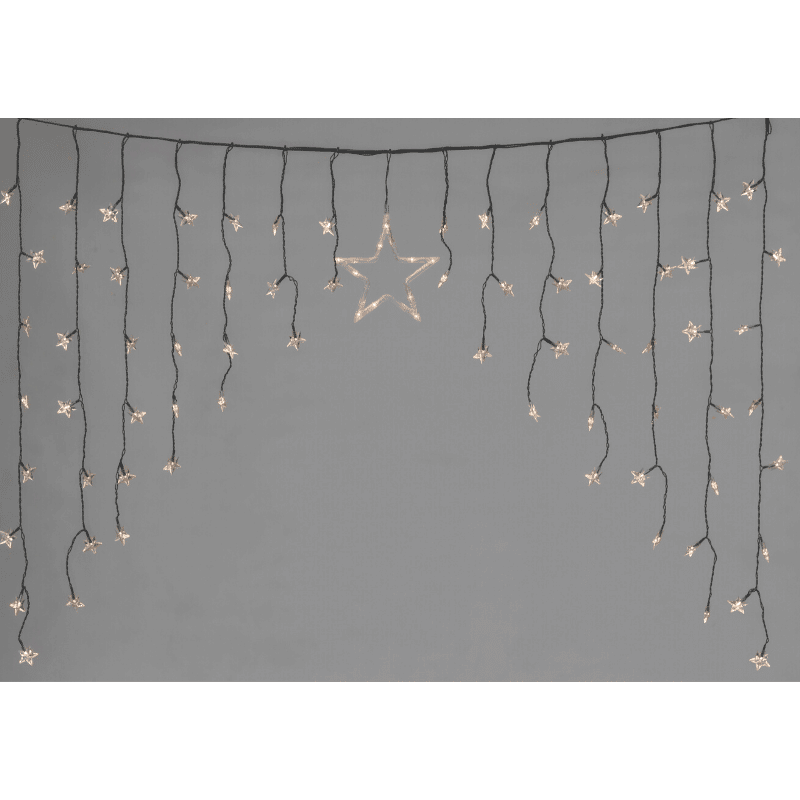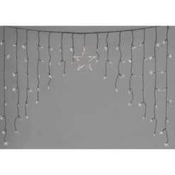 - Ikkunalle ripustettavat valotähdet , joissa 10 ledin iso tähti, sekä 70 lediä pieniä tähtiä. 5 m liitosjohto muuntajalle.