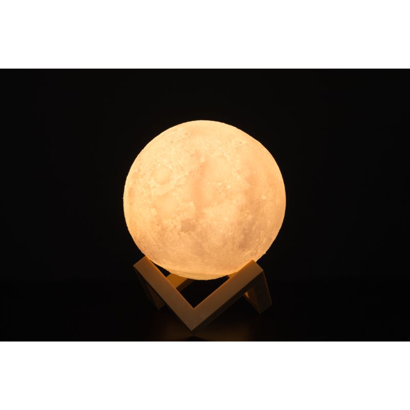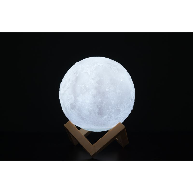 USB-ladattava kuuta muistuttava koristevalaisin. Kosketuskytkimellä valittavissa lämminvalkoinen K2700 ja K4000 neutraalivalkoinen LED-väri. Valonkirkkaus on säädettävissä. Lyhyt kosketus käynnistää tai sammuttaa valaisimen ja pidemmällä kosketuksella säädetään kirkkautta. Mukana latausjohto. Lamppu on 15 cm korkea ja jalustan koko on 8,5 cm. Polypropeeni, PVC, ABS.