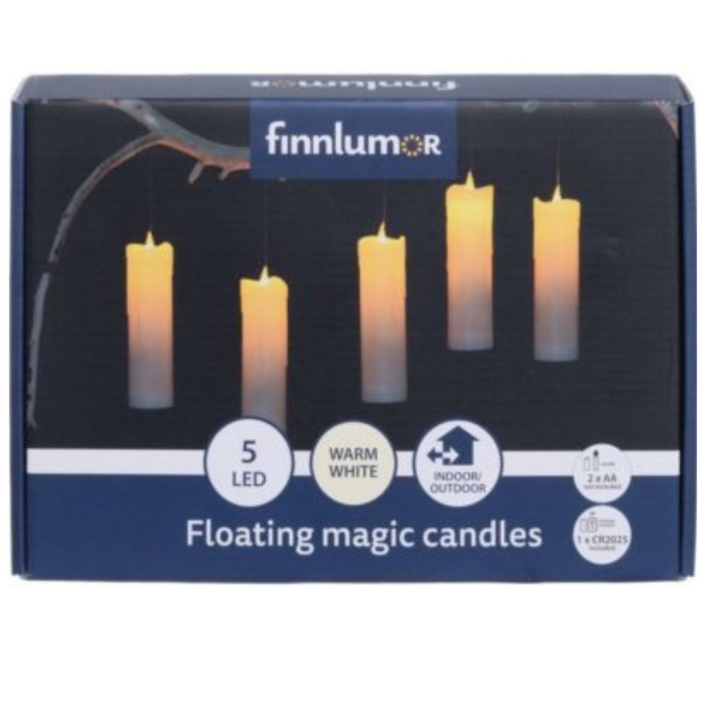 - Pakkaus sisältää 5 kpl leijuvia Led kynttilöitä.