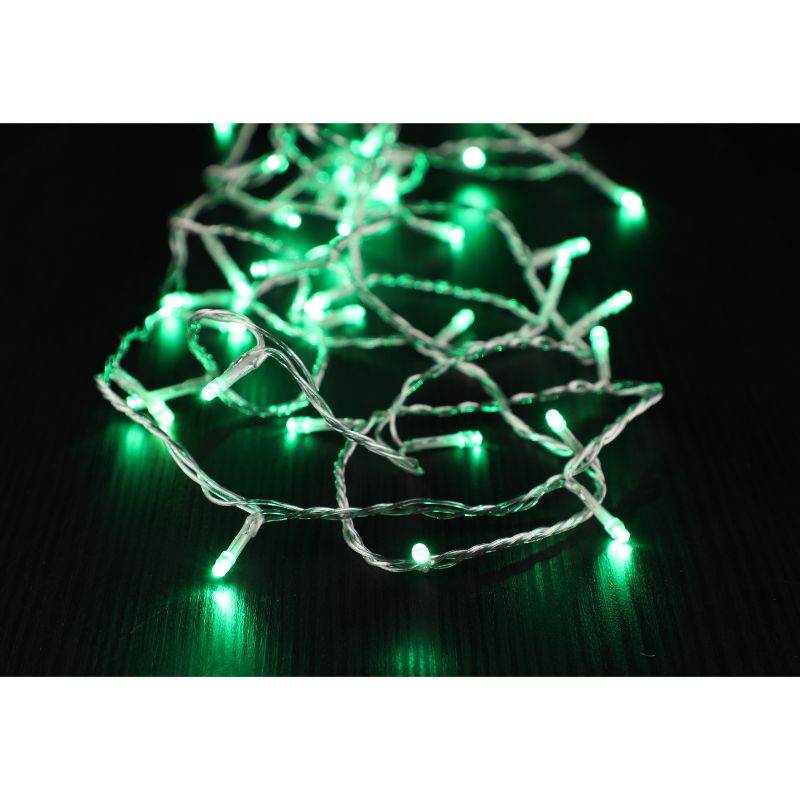 Led valoketju 80 led vihreä sisältää 80 kpl vihreä LED, 3V 0,06W. Valoaihe 8 m. Ledit 10 cm välein. Läpinäkyvän johdon pituus 5 m. Muuntaja 31V 3,6W, IP44. Sisä- ja ulkokäyttöön.