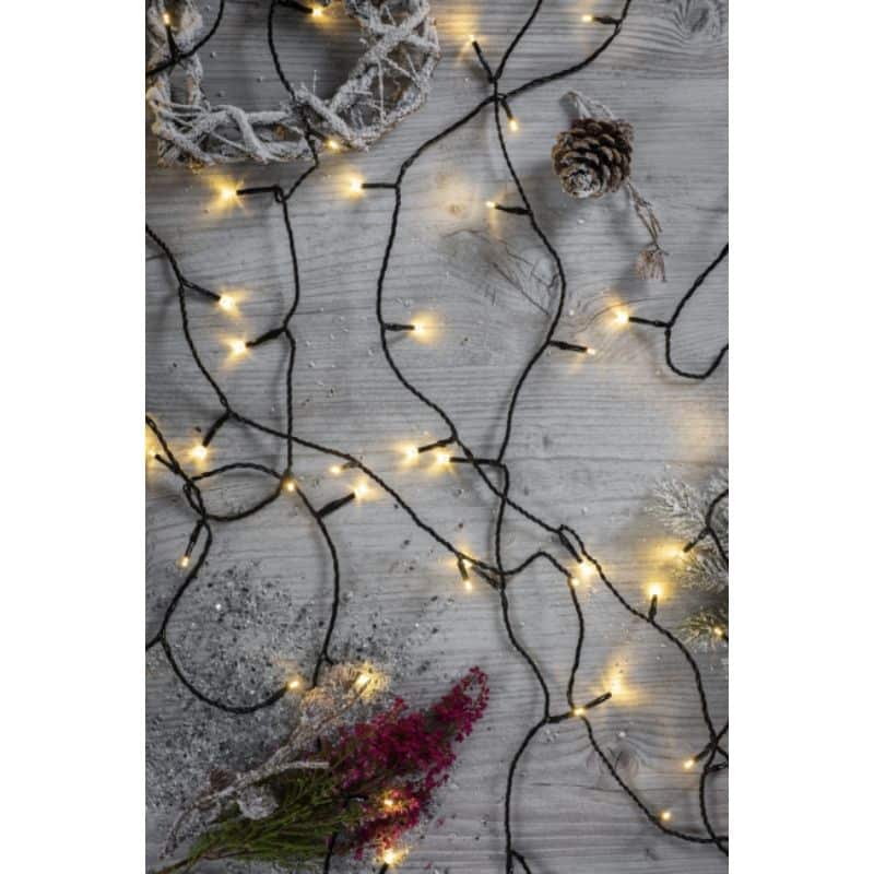 Tumma johtoinen 19,9 metrin led-valosarja sisä- ja ulkokäyttöön. Valosarjassa on 200 lediä ja väri on lämmin valkoinen. Paloikä on noin 10 000 tuntia. Muuntaja IP44, 31V, 6W.