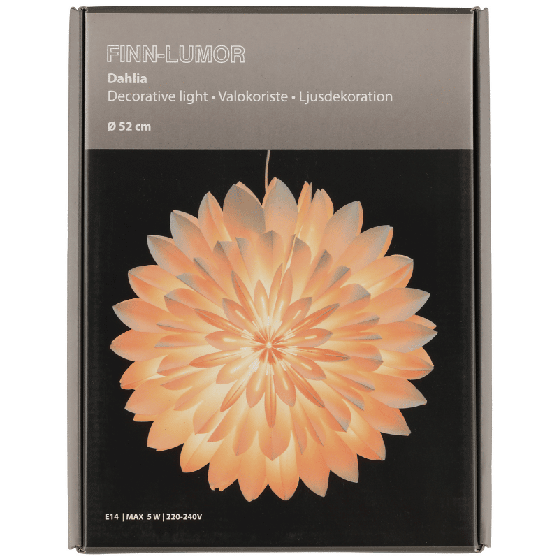 Roikkuva paperikoriste, pakkaus sisältää liitäntäjohdon katkaisijalla.