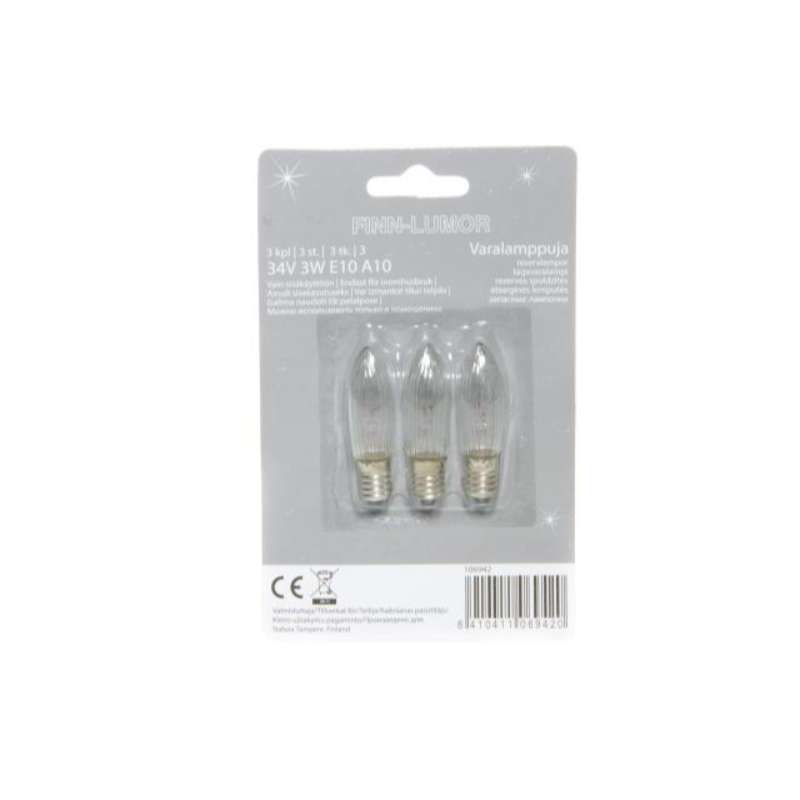 Varalamppu no. A10. 34V, 3W, E10. Sisäkäyttöön.