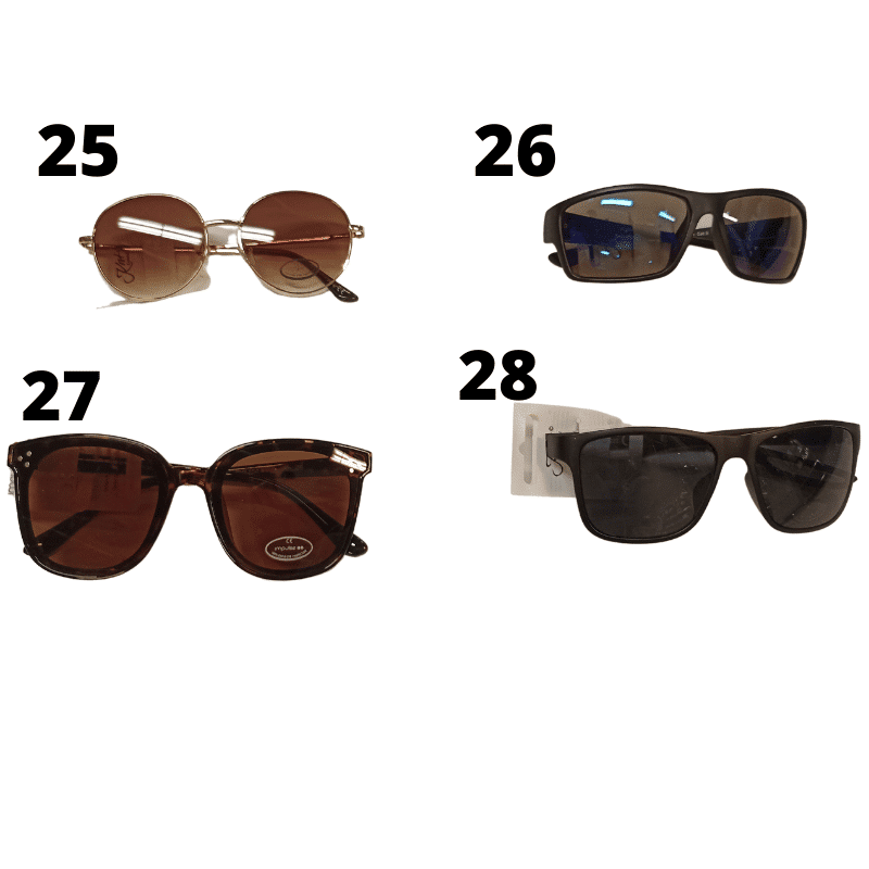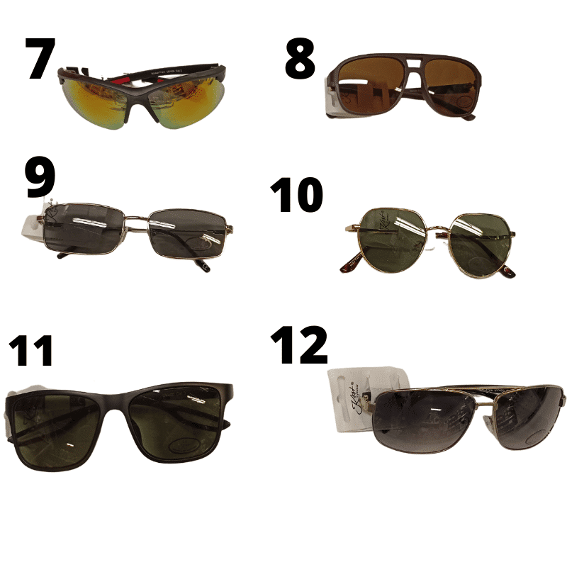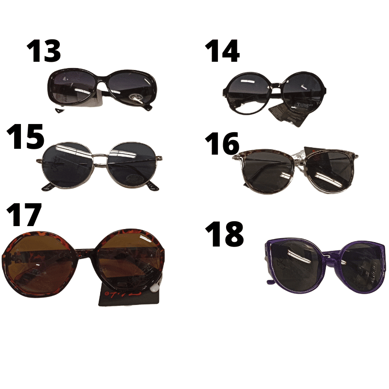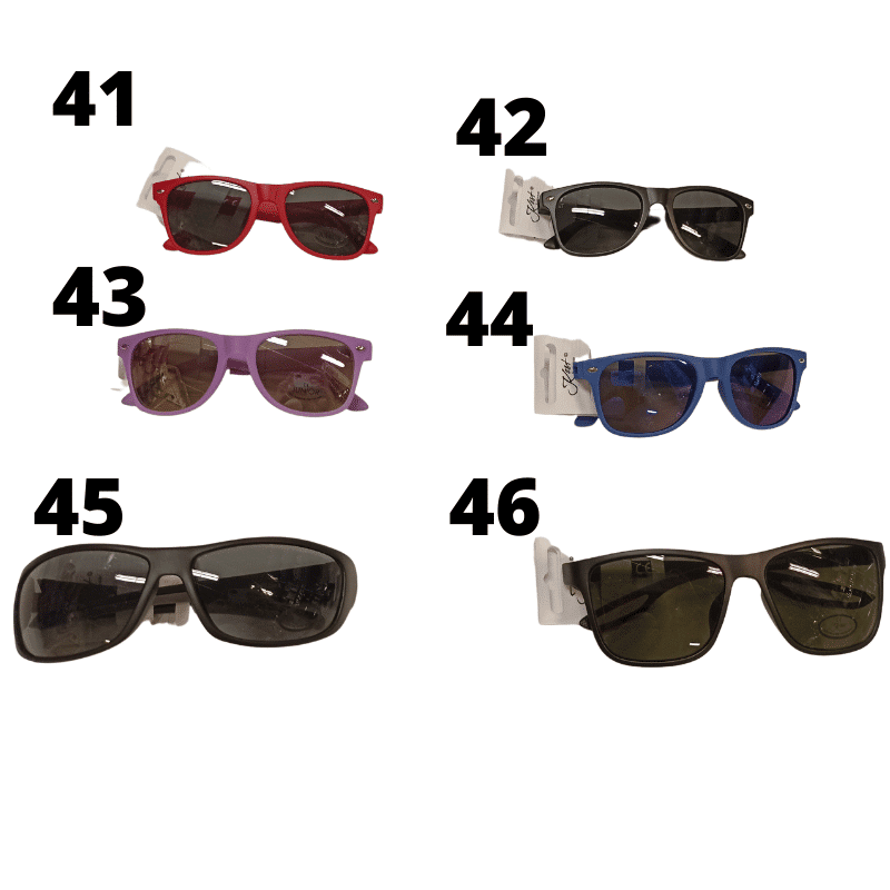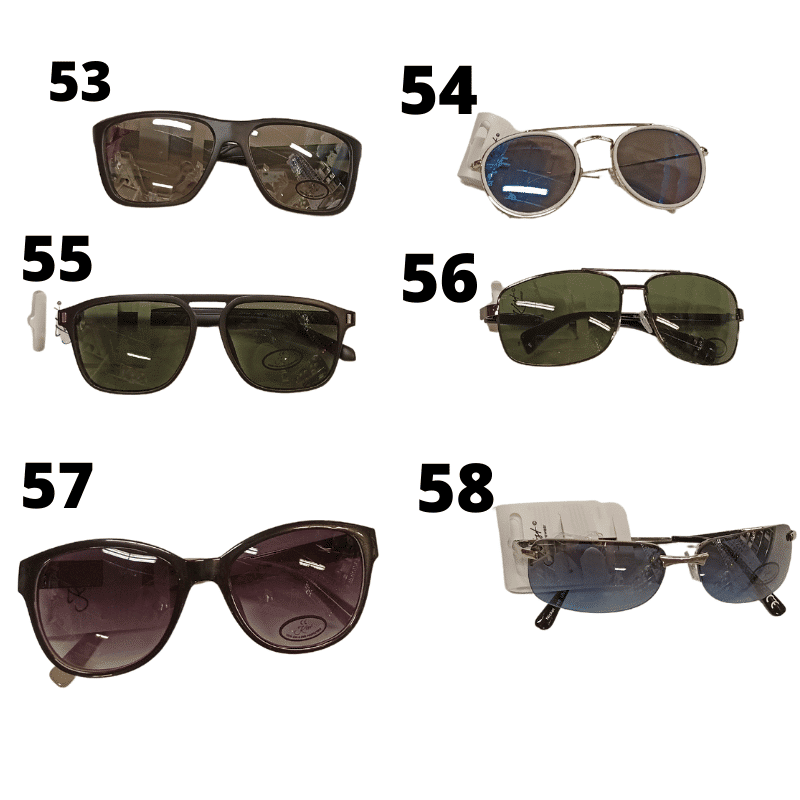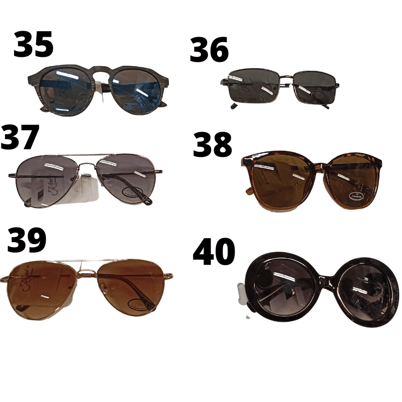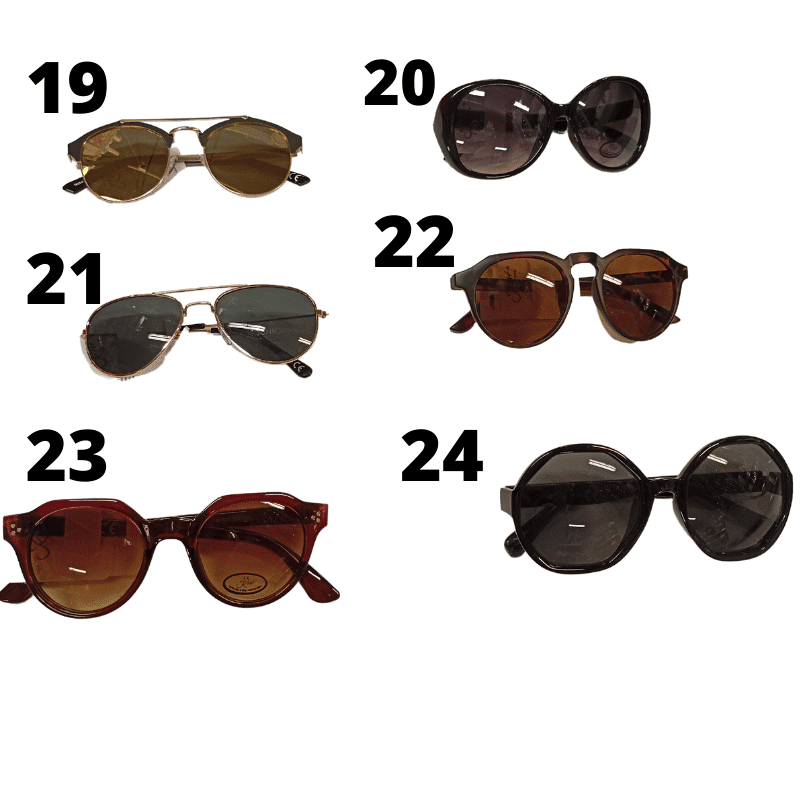 Huom! Hinta sisältää yhdet aurinkolasit. Verkkokaupasta tilatessa voitte kirjoittaa minkä numeroidun aurinkolasin haluatte tilauksen loppuosassa olevaan lisätietokenttään. Mikäli tietty tuote on teille tärkeä, kannattaa ottaa yhteyttä ja varmistaa, että sitä on varastossa. Tuote saapuu lajitelmana, joten haluamasi tuote on voinut loppua varastosta.