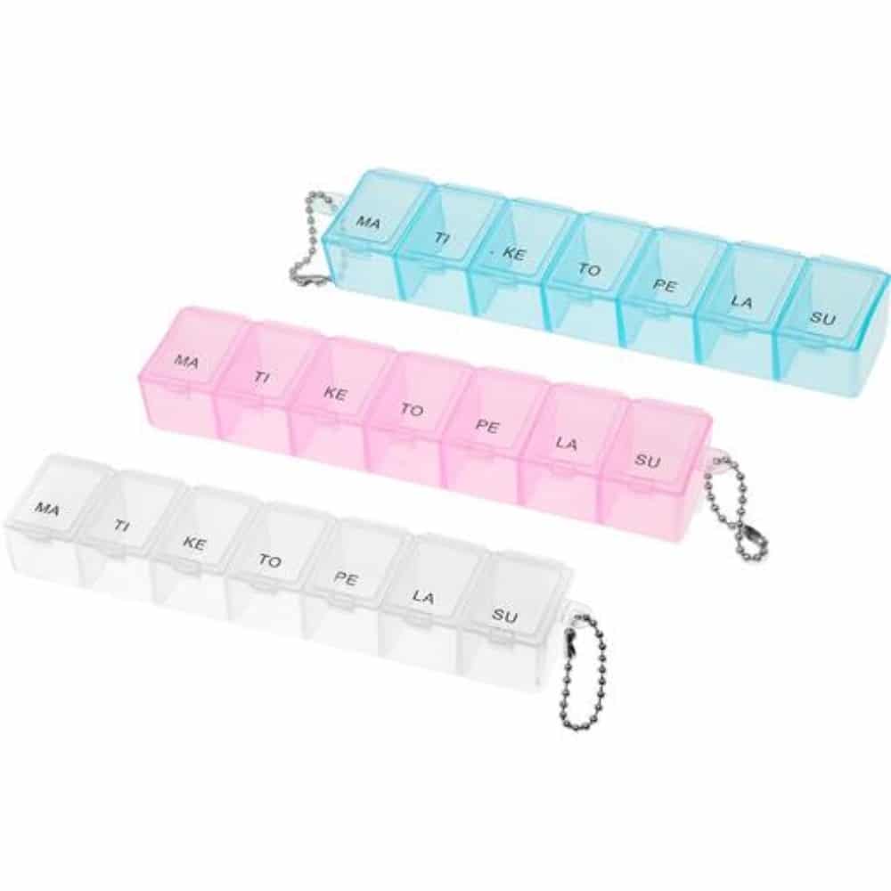 Lääke dosetti 7pv erilaisia – Vaaleanpunainen, sininen ja läpinäkyvä