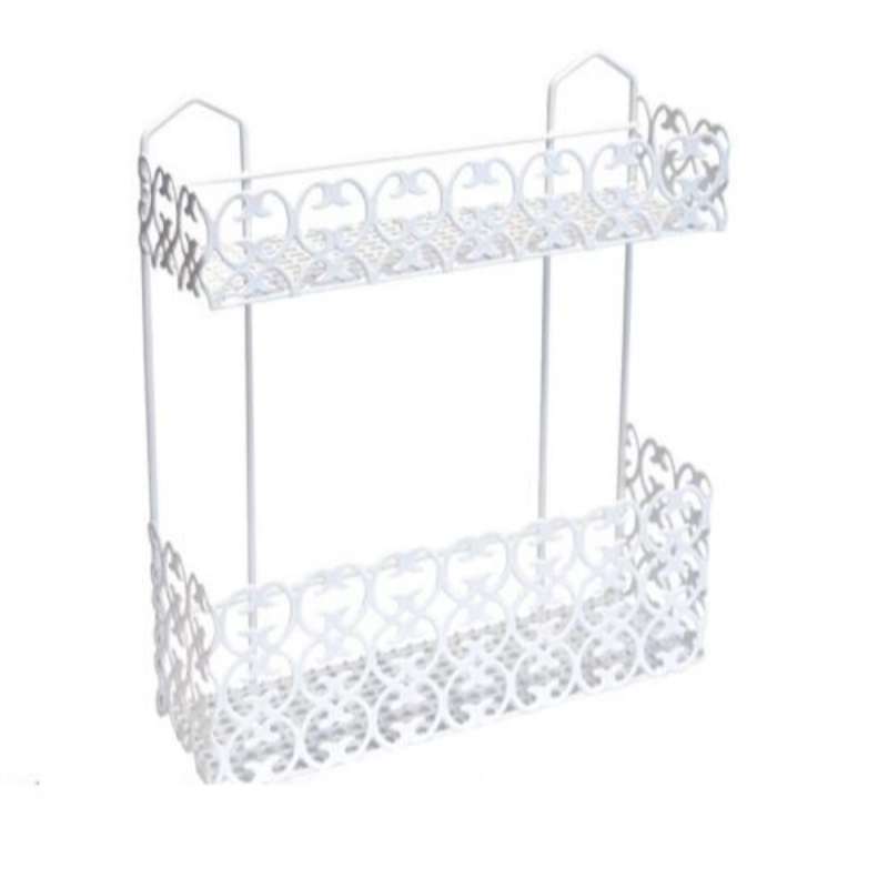 Tyylikäs ja käytännöllinen valkoinen suihkuhylly tarjoaa kätevän säilytysratkaisun kylpyhuoneen seinälle. Kahdella tasolla varustettu seinähylly antaa runsaasti tilaa shampoolle, saippualle ja muille suihkutarvikkeille. Suihkuhylly on valmistettu maalatusta metallista.