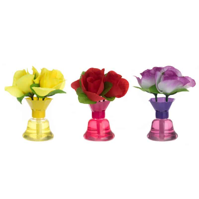 Ruusu, sitruuna, laventeli. Pieni tekokukkakimppu joka tuoksuu raikkaalta. Poistaa nopeasti epämiellyttävät hajut sisätiloista jättäen raikkaan, miellyttävän ja luonnollisen tuoksun pitkäksi ajaksi. Kolme ihastuttavaa tuoksua sulostuttamaan kylpyhuonettasi, olohuonettasi taikka toimistoasi, romanttinen ruusu, raikas sitruuna ja rauhoittava laventeli.