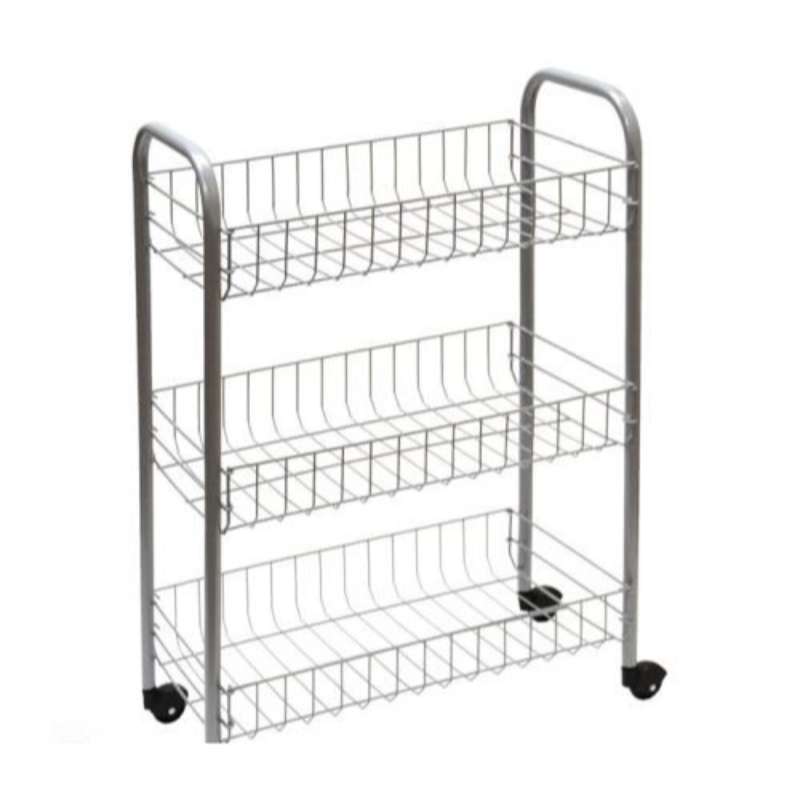 Monikäyttöinen, pyörällinen korivaunu tavaroiden säilytykseen. Kolme kiinteää hyllyä, helppo koota.