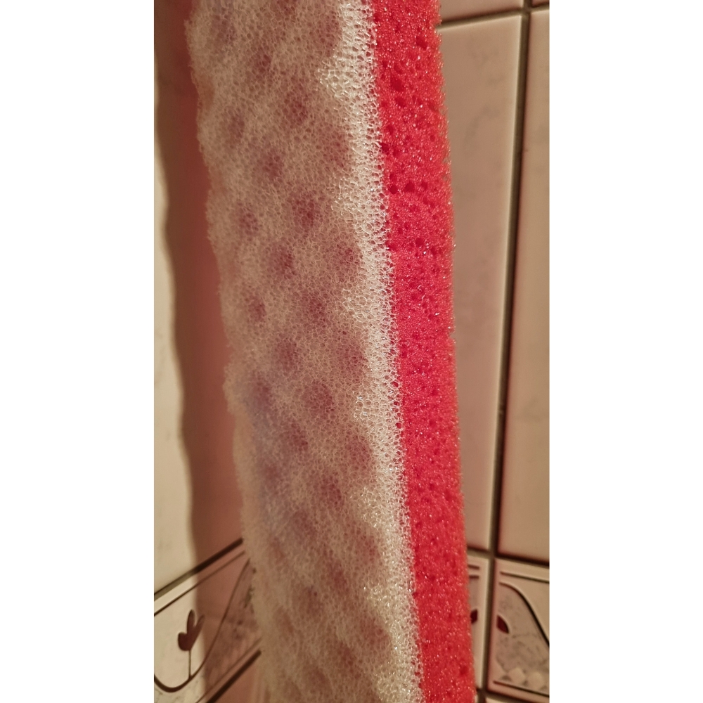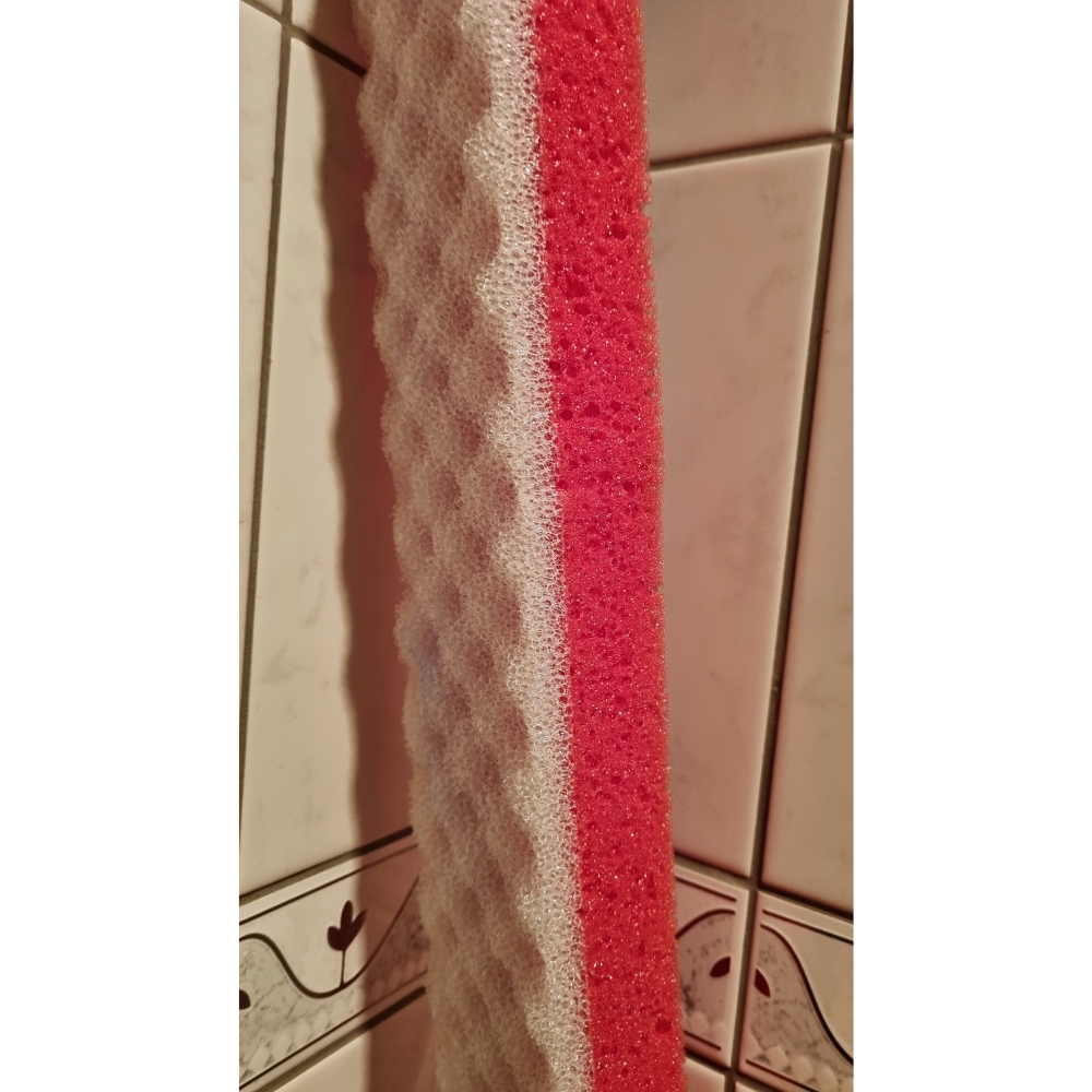 Tätä mahtavan pitkää pesusientä voi käyttää sellaisenaan, jos tarvitaan pitkä pesusieni, tai sitten siitä voi leikata juuri sen pituisia paloja kuin haluaa. Sienessä on karhea ja normaali pinta.