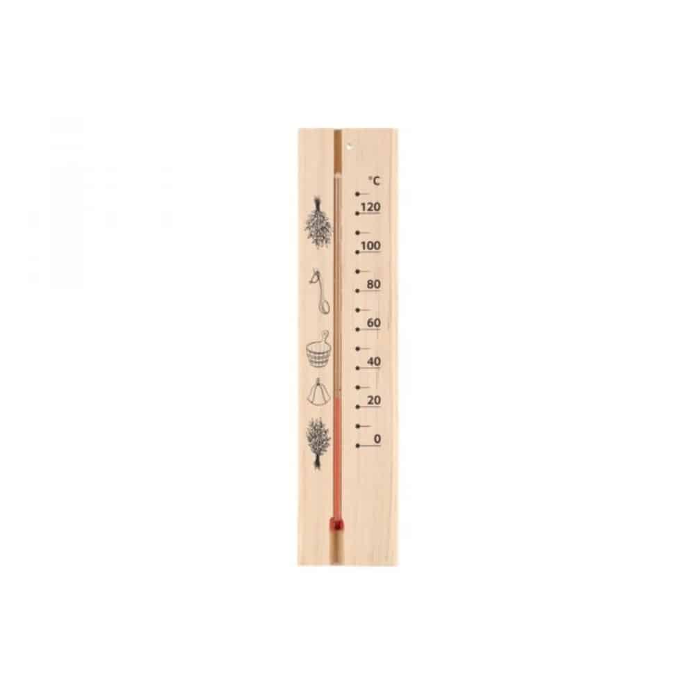 Perinteinen ja ajaton lämpömittari saunaan. Saunamittarissa on selkeät, helposti luettavat astemerkinnät. Puunvärinen saunan lämpömittari integroituu tyylikkäästi perinteiseen puunväriseen saunaan, mutta myös vaaleaan ja tummaan tyyliin. Saunan lämpömittarissa on mittausväli 0-120°C.