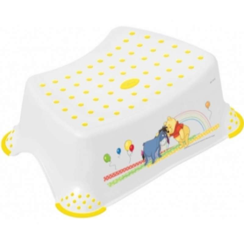 Disney NALLE PUH -aiheisella printillä. Korokepallin avulla lapsi ylettyy helposti wc-istuimelle, käsienpesualtaalle jne. Korokepallin pohjassa on kumipäällyisteiset ””tassut””, joiden avulla korokepalli pysyy luistamatta paikoillaan. Liukastumisen ehkäisemiseksi myös askelma on päällystetty kumisilla liukuestenystyröillä. Jakkara, palli