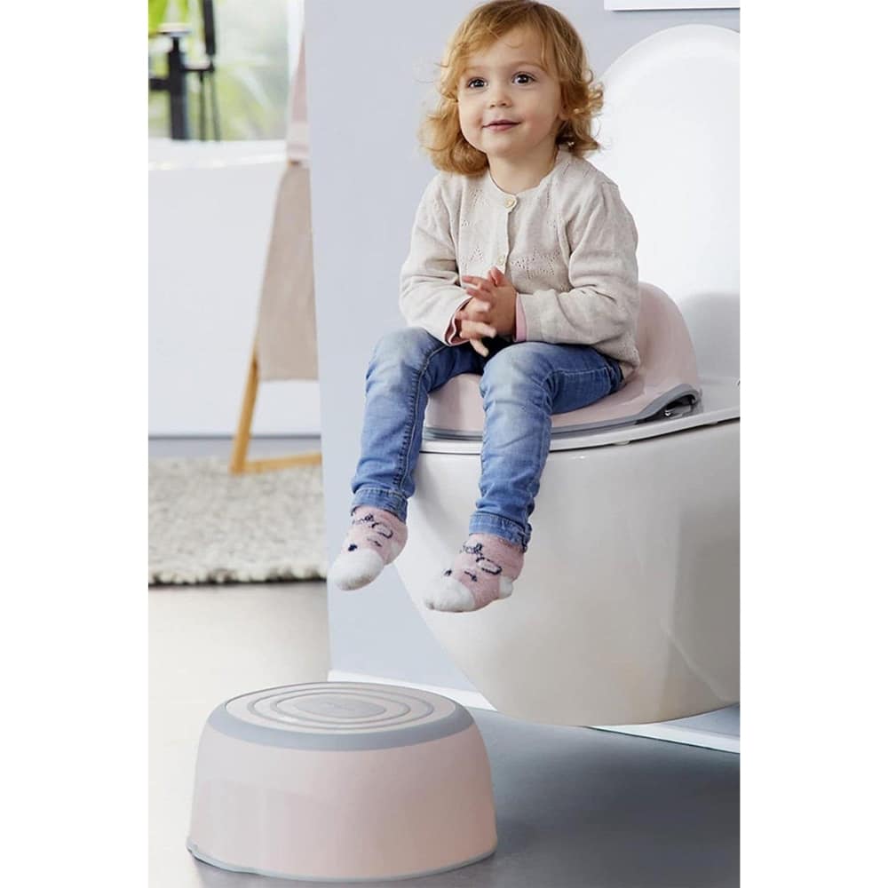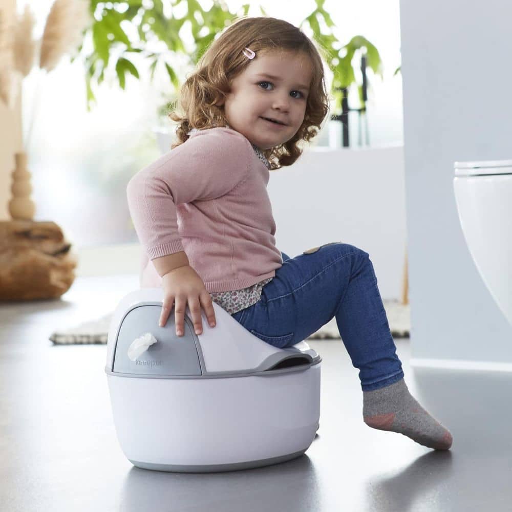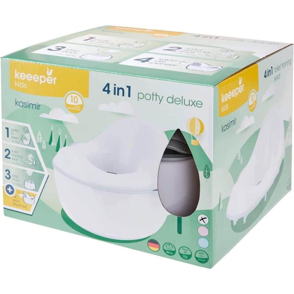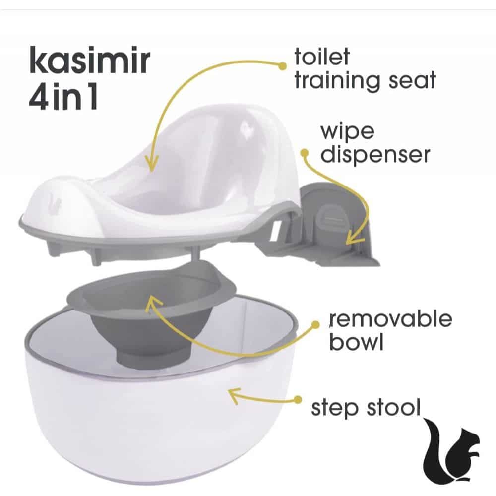 - Tyylikäs 4in1 pottatuoli, jossa on kaikki; potta, WC-supistaja, korokepalli ja lokero kosteuspyyhkeille