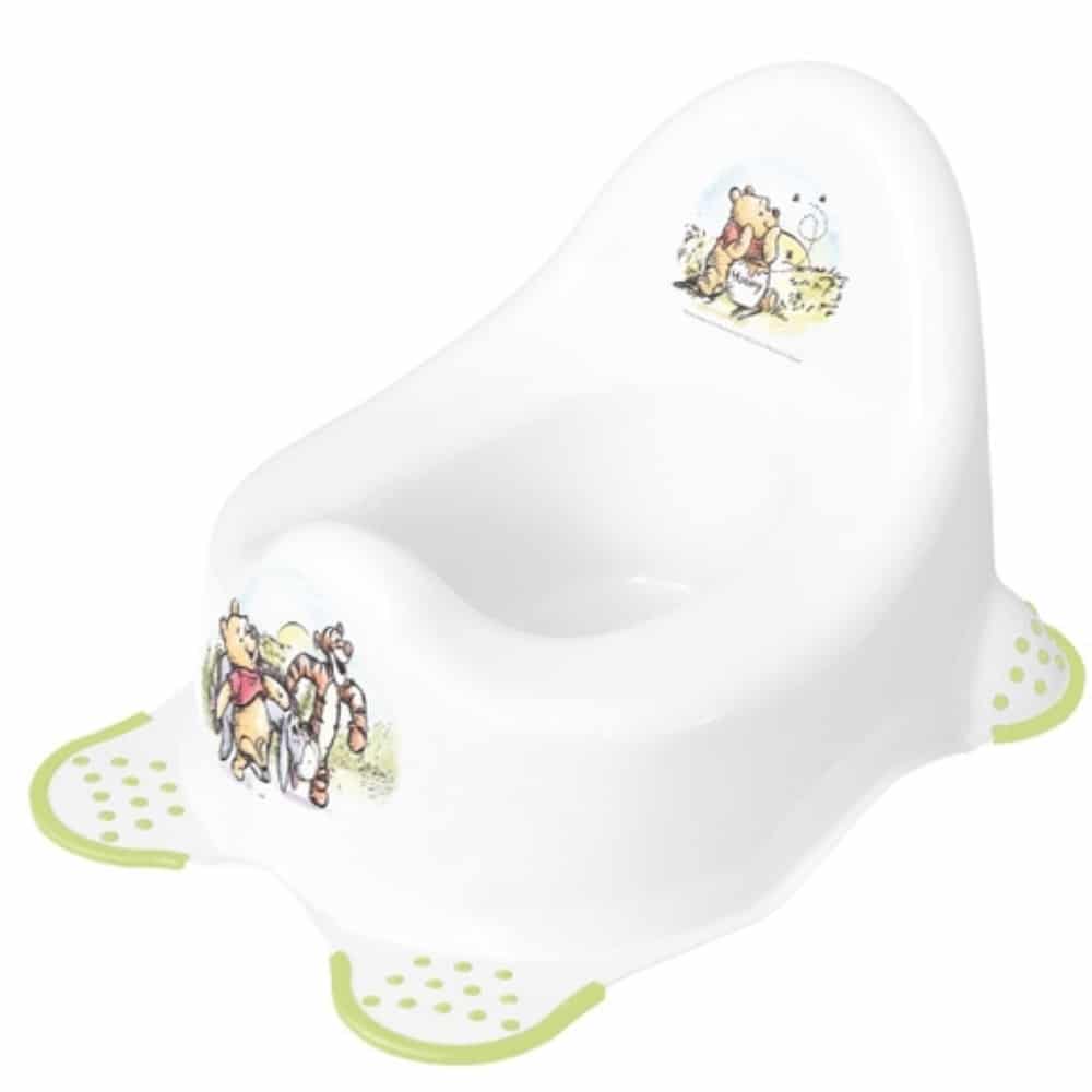 Potta Nalle Puh valkoinen – Suositut Nalle Puh -aiheiset kuvat! Moderni muotoilu ja korkea selkätuki takaavat miellyttävän pottailun. Potassa kumipäällysteiset ”tassut”, joiden ansiosta potta pysyy luistamatta paikoillaan.