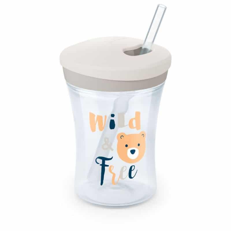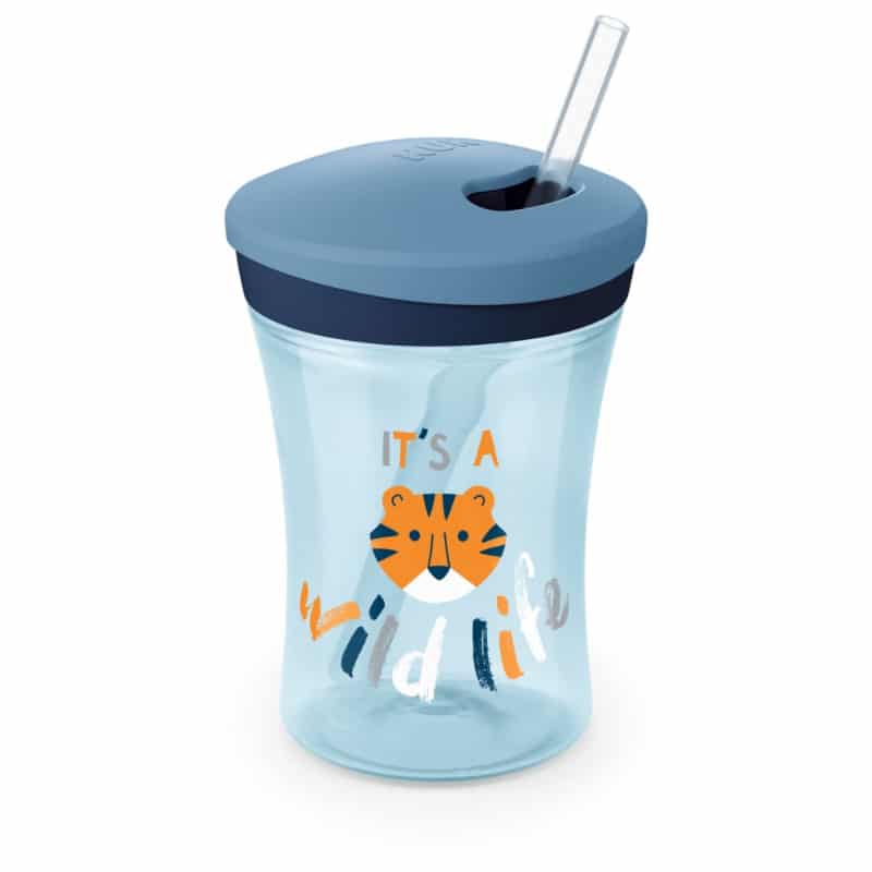 - Juomamuki 230 ml Nuk Action cup +1 v on Pikkulasten juomapullo pillillä. Kääntämällä kantta voit sulkea pullon tiiviisti.