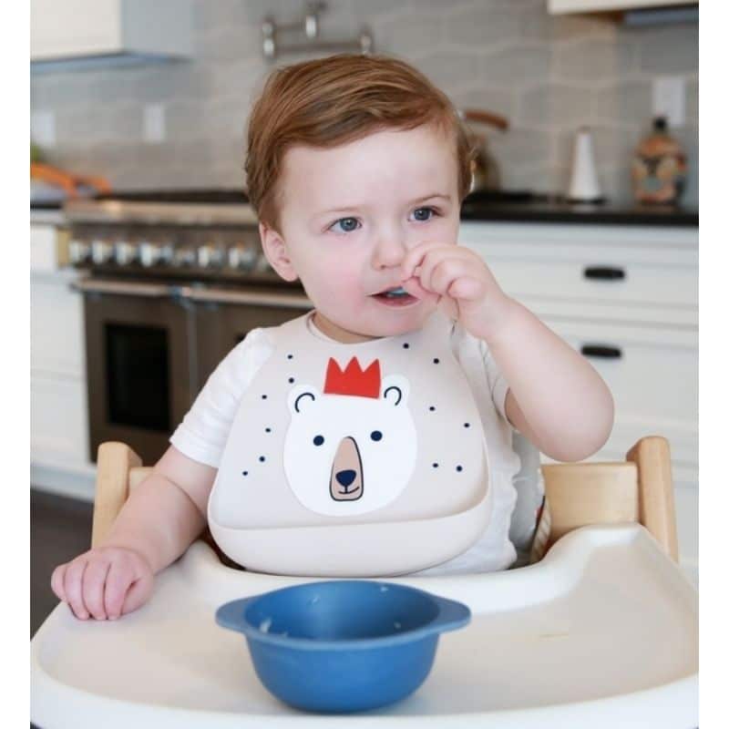 - Ihanan pehmeää vauvan ruokakaukaloa voi käytää yhä uudestaan, ja se näyttää joka kerta hyvältä! Nämä tyylikkäät ja kätevät ruokalaput on valmistettu 100%:sta elintarvikeluokan BPA-vapaasta silikonista. Kaikki mallit ovat tahrankestäviä, ne voidaan pestä tiskikoneessa ja niissä on muruset keräävä kaukalo. Ruokalapussa on säädettävä hihna, joka sopii 6kk – 3 vuoden ikäisille lapsille.