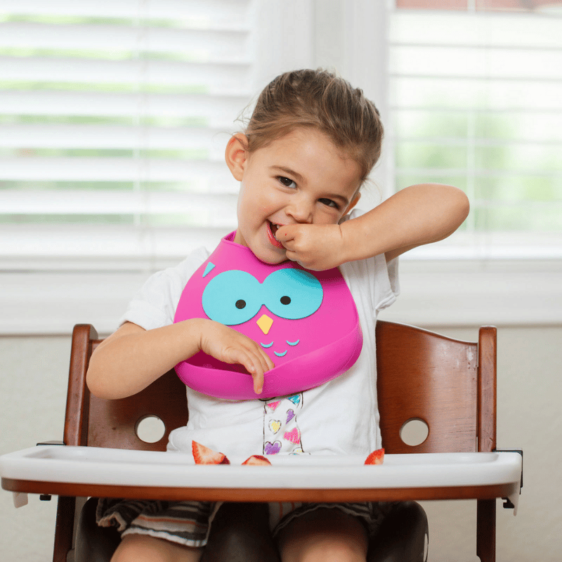 - Ihanan pehmeää vauvan ruokakaukaloa voi käytää yhä uudestaan, ja se näyttää joka kerta hyvältä! Nämä tyylikkäät ja kätevät ruokalaput on valmistettu 100%:sta elintarvikeluokan BPA-vapaasta silikonista. Kaikki mallit ovat tahrankestäviä, ne voidaan pestä tiskikoneessa ja niissä on muruset keräävä kaukalo. Ruokalapussa on säädettävä hihna, joka sopii 6kk – 3 vuoden ikäisille lapsille.