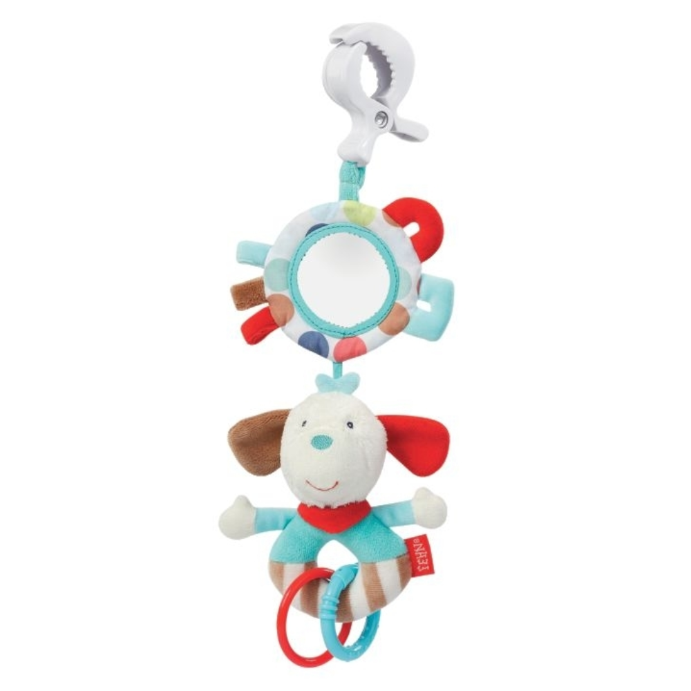 Lelun pehmeät värit ja kuviot stimuloivat lapsen näköaistia. Leluissa on on peili, helistin ja erilaisia renkaita ja ulokkeita roplattavaksi.